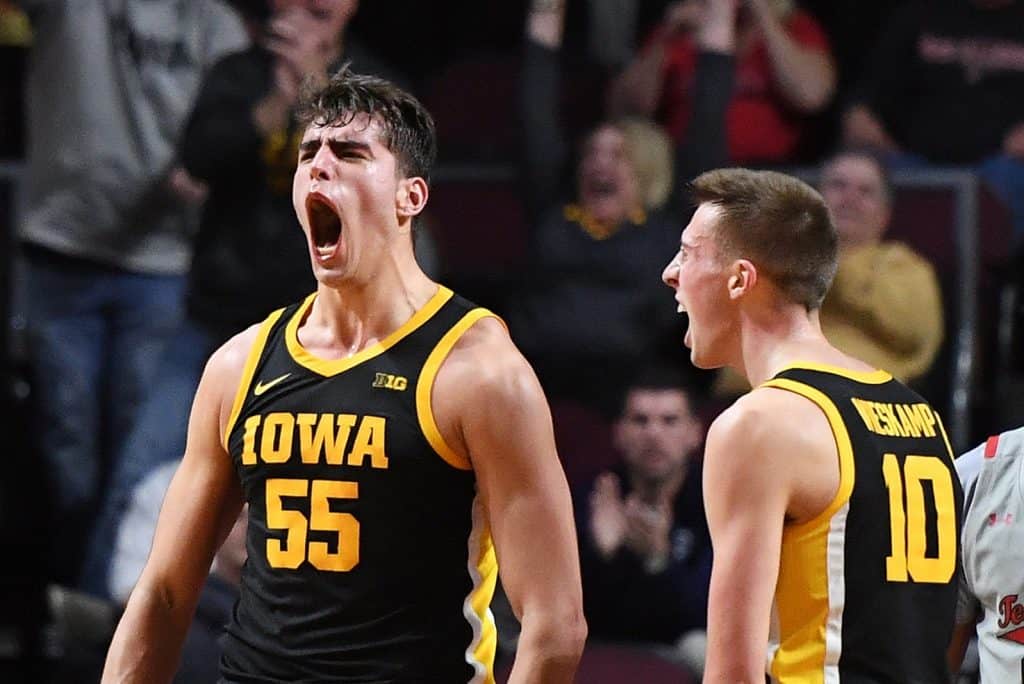 C’è tutta una galassia di guardie-ali che ruotano attorno al lungo, tutte dotate di buon tiro da 3. Jordan Bohannon (38.9%), ma soprattutto Joe Wieskamp (47.5%) e CJ Fredrick (49.3%) ossia il secondo e terzo miglior tiratore della Big Ten. La PG Connor McCaffery (figlio dell’allenatore) fa da vigile e smista palloni. Ed ecco che il gioco degli Hawkeyes è spiegato: palla dentro a un fenomeno, palla fuori ai tiratori. Semplice quanto letale. Il risultato è una squadra che in fase offensiva esegue spesso come un orologio (secondo miglior attacco della Ncaa), che non spreca un solo pallone (prima in Ncaa per TO% e non-steal TO%) e terza tra le big nel tiro da tre dietro Baylor e Michigan.