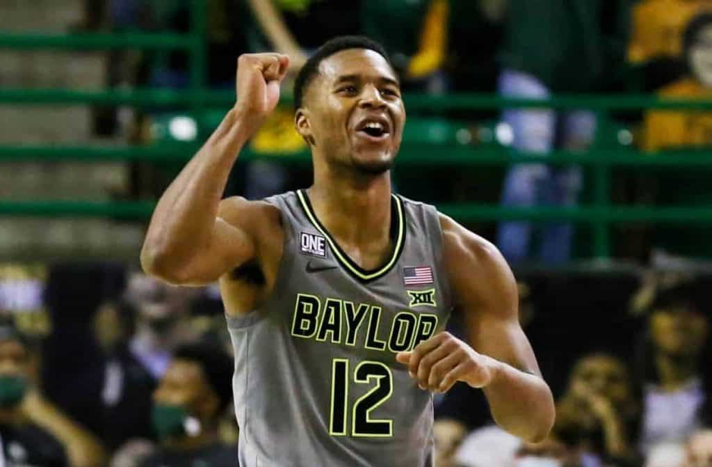 Jared Butler esulta dopo una delle tante triple segnate contro Kansas